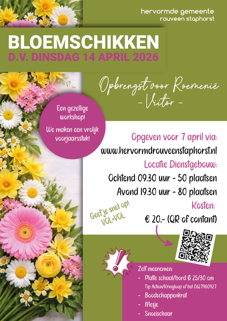 Zin in een gezellige ochtend of avond bloemschikken? Geef je snel op! Vol=vol! Wanneer, waar, wat meenemen? Zie flyer voor meer info!